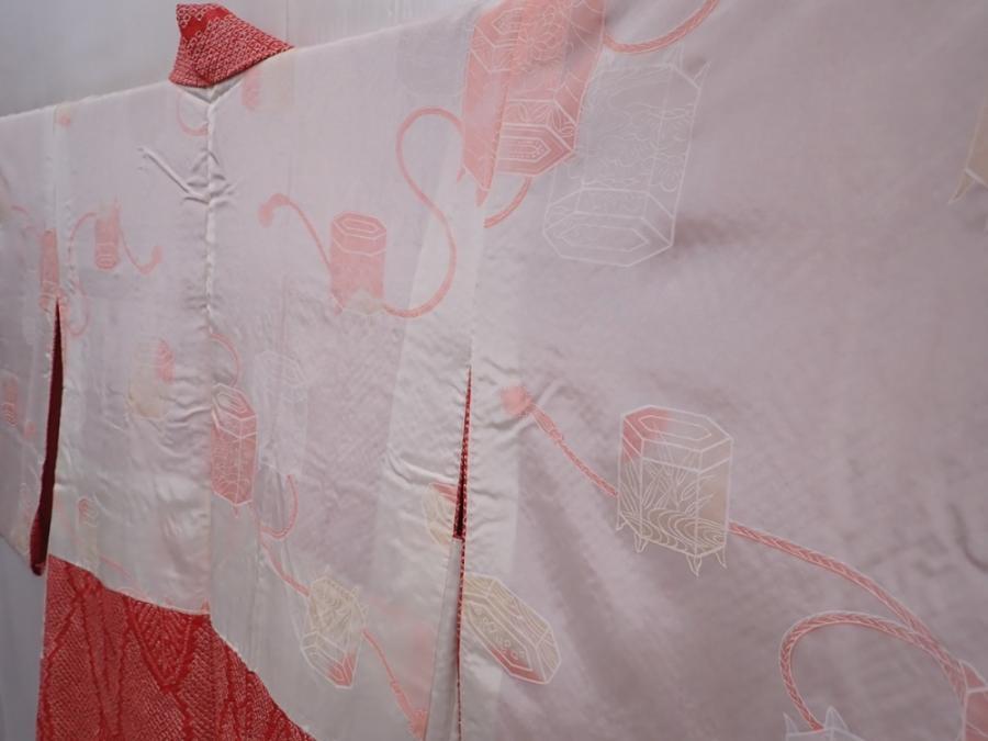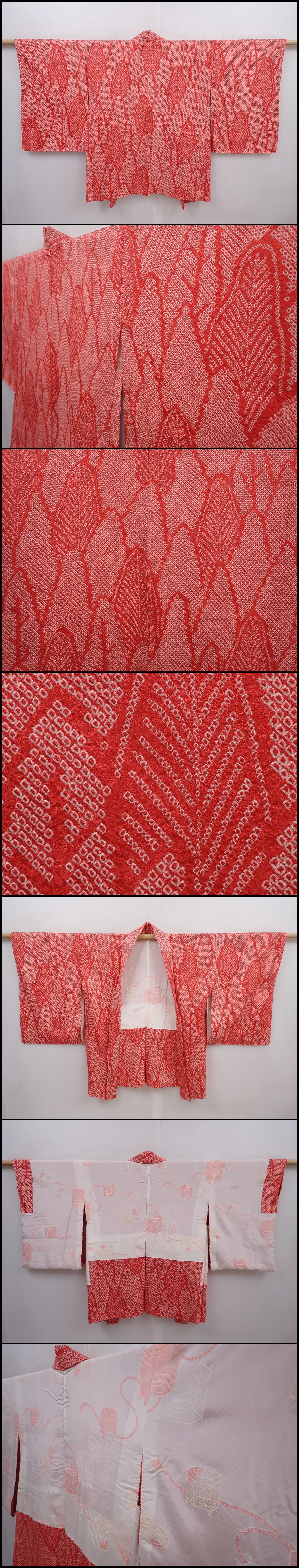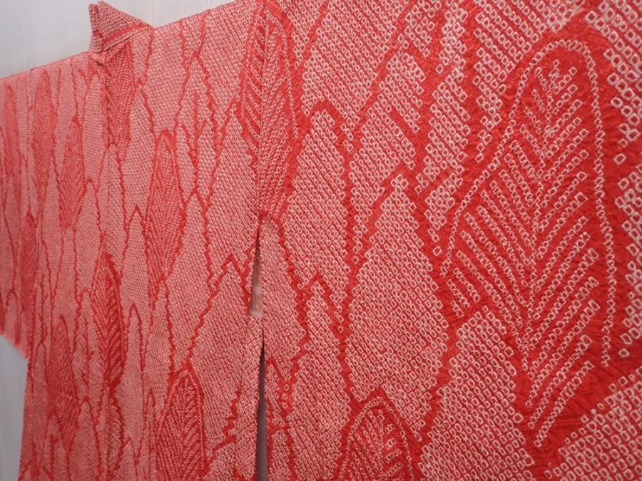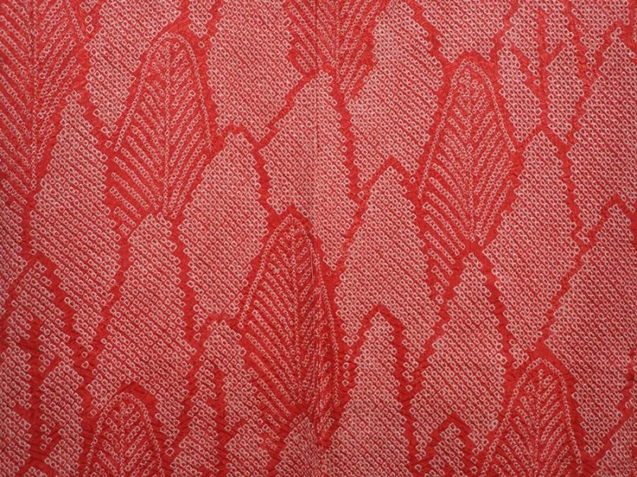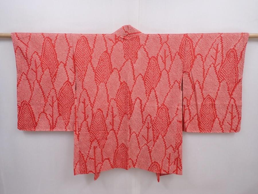6224T03z440 Vintage Japanese Kimono Silk SHIBORI HAORI Trees Red
