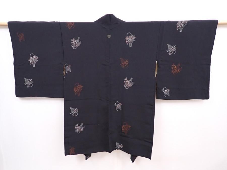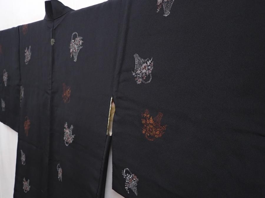 6224T04z600 Vintage Japanese Kimono Silk HAORI Flowers Black