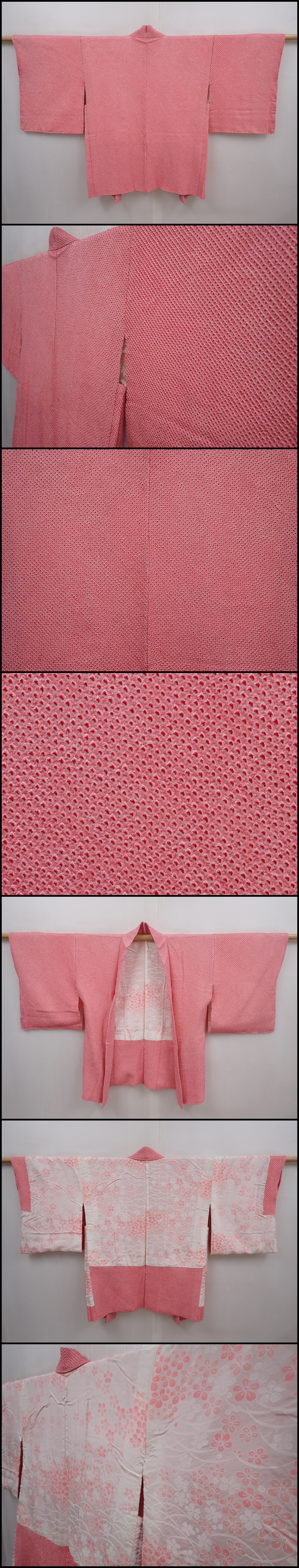 6224T05z440 Vintage Japanese Kimono Silk SHIBORI HAORI Pink