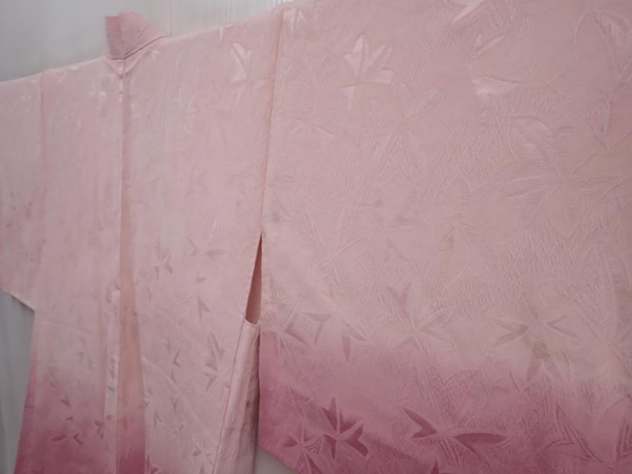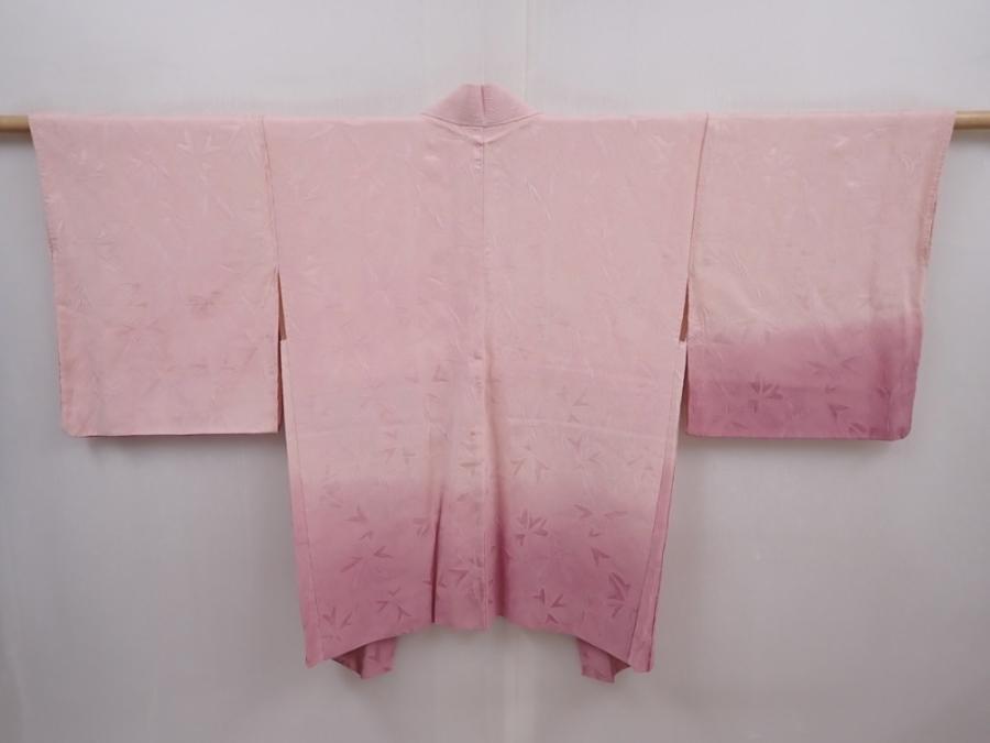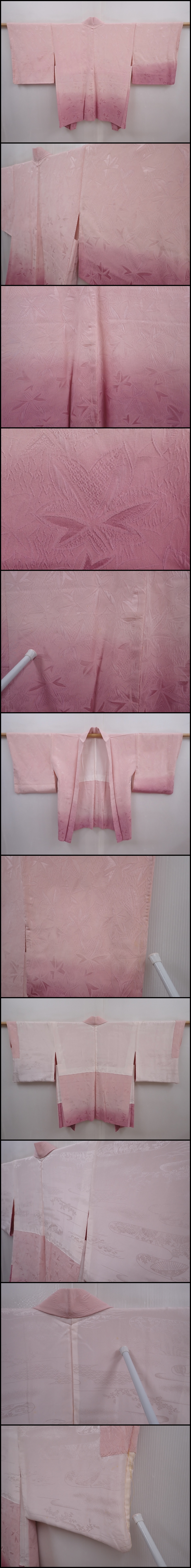 6224T06z570 Vintage Japanese Kimono Silk HAORI Maple Pink