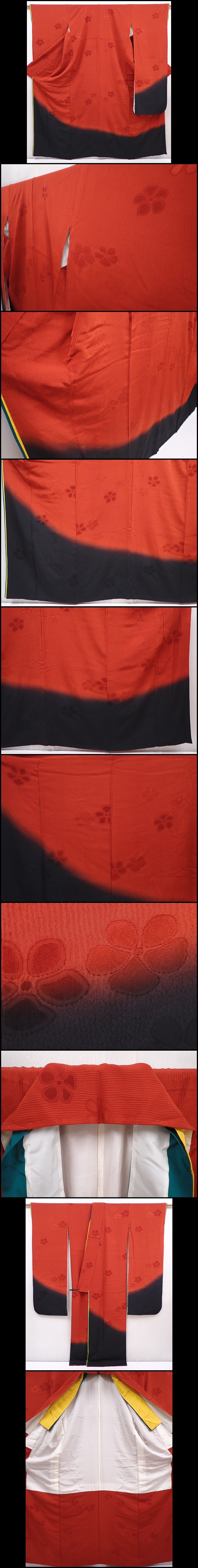 6224T12z1300 Japanese Kimono Silk FURISODE Flower Dark red