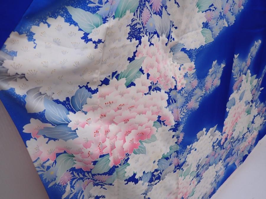 6224T14z1070 Japanese Kimono Silk FURISODE Flowers Oriental blue