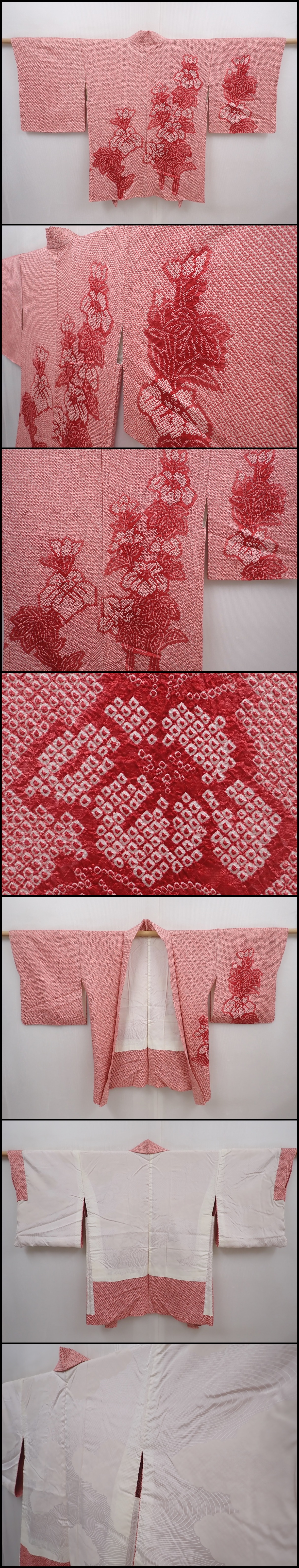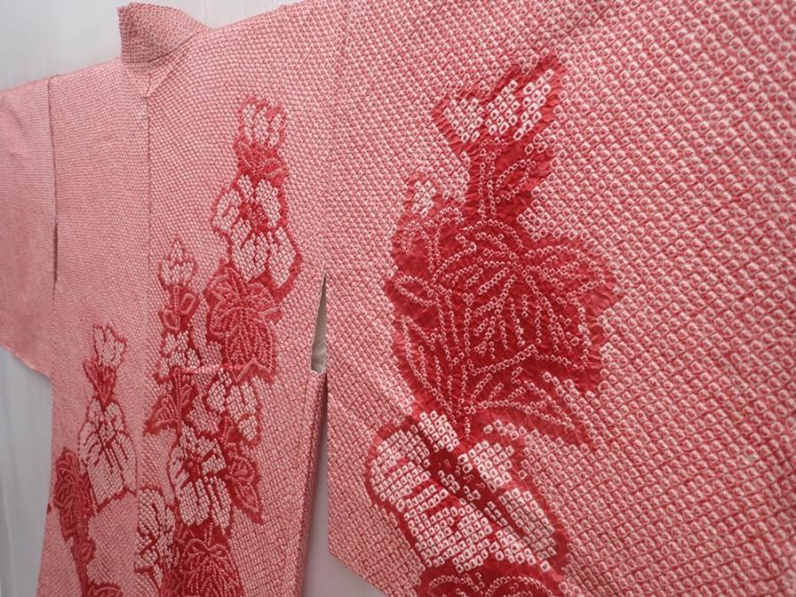 6225T02z440 Vintage Japanese Kimono Silk SHIBORI HAORI Flower Coral pink