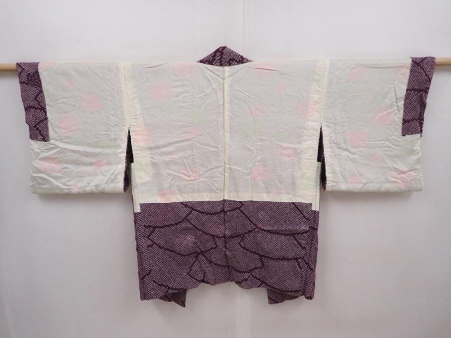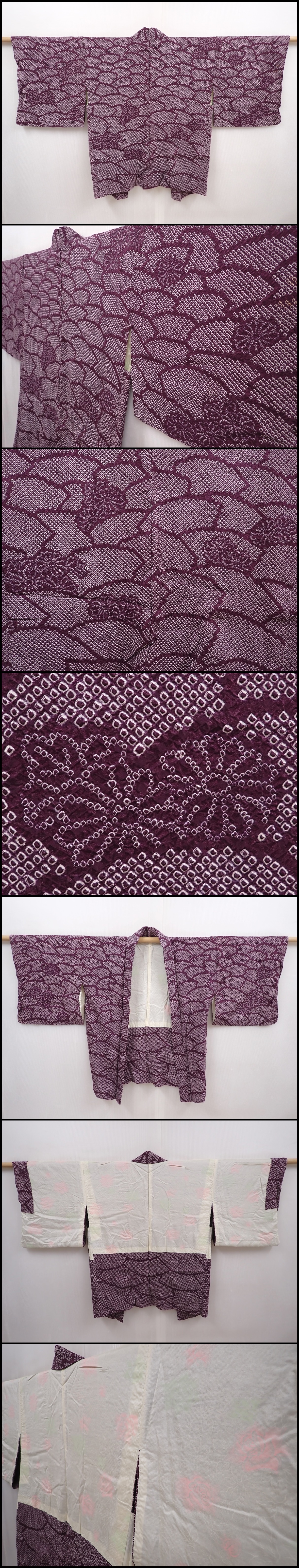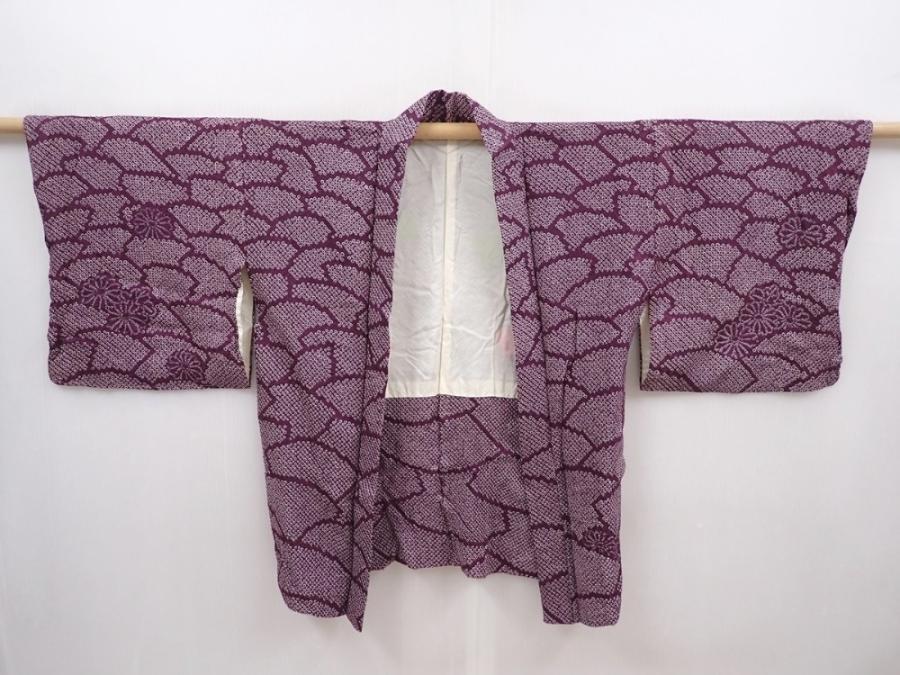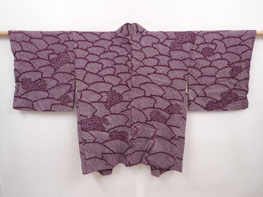 6225T03z460 Vintage Japanese Kimono Silk SHIBORI HAORI Dark purple