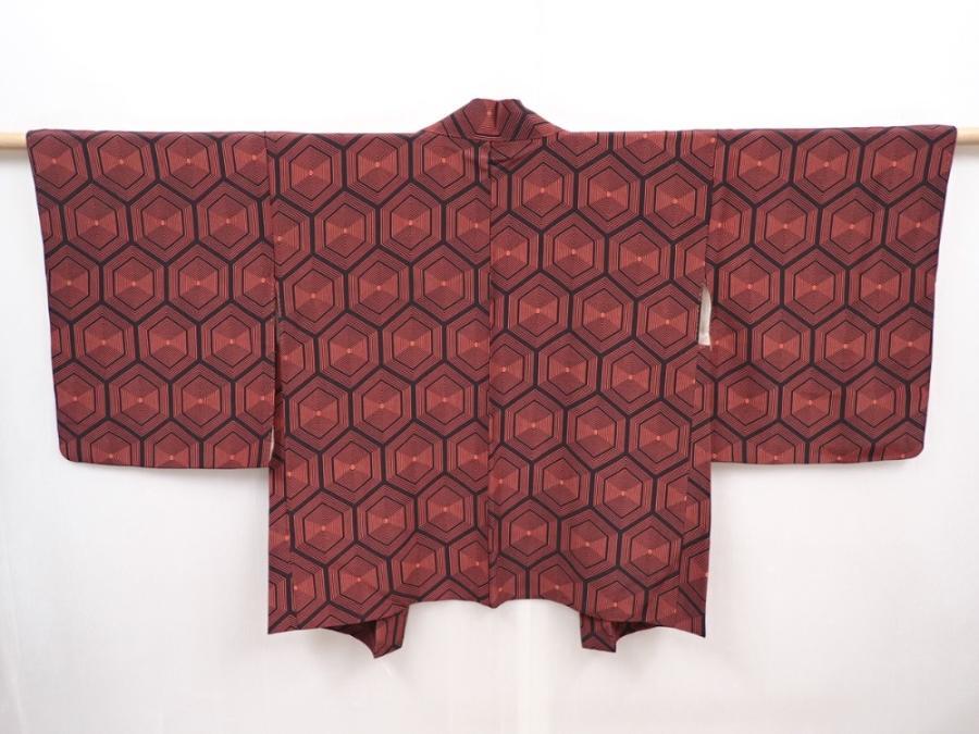 6225T08z520 Vintage Japanese Kimono Silk HAORI Red-Brown