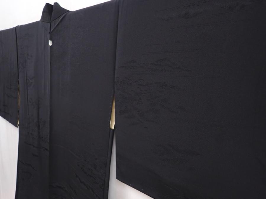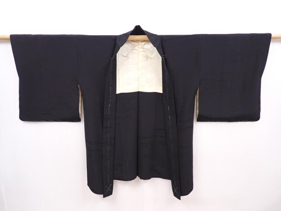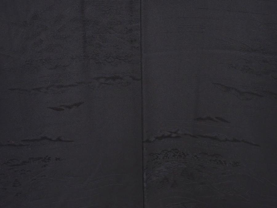 6225T10z600 Vintage Japanese Kimono Silk HAORI Scenery Black