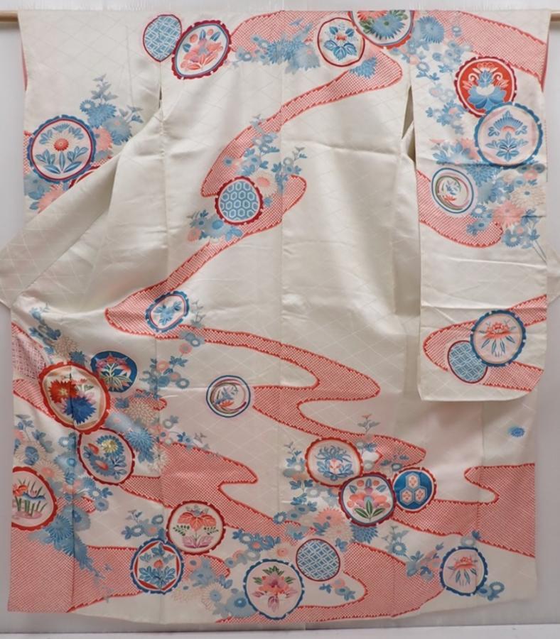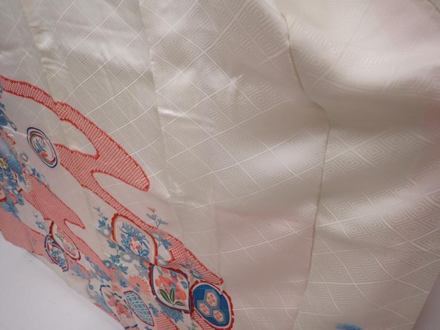 6225T11z870 Vintage Japanese Kimono Silk FURISODE Flowers Off-white