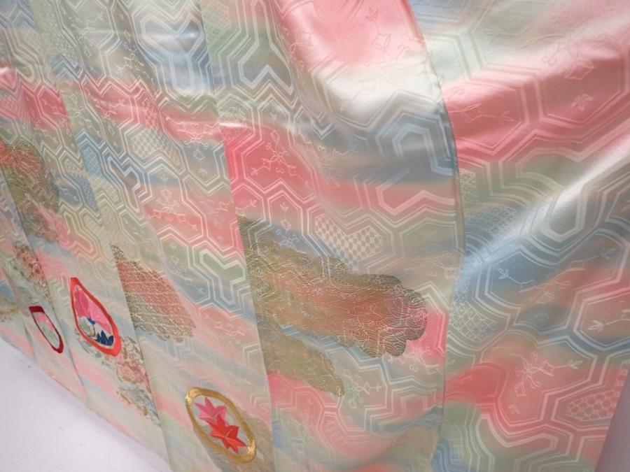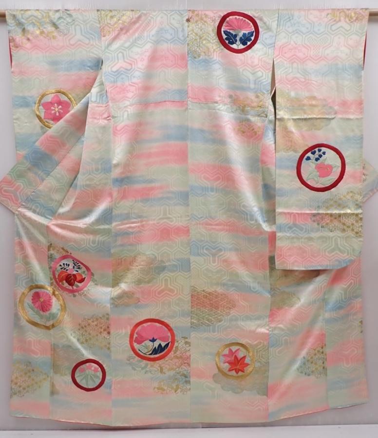 6225T13z1170 Vintage Japanese Kimono Silk FURISODE Flowers Pistachio green