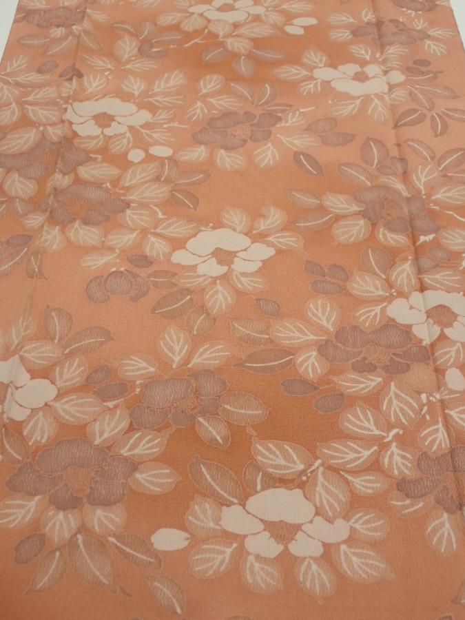 2M06z90 Japanese Kimono Silk FABRIC Camellia Light brown 63.8x14.2