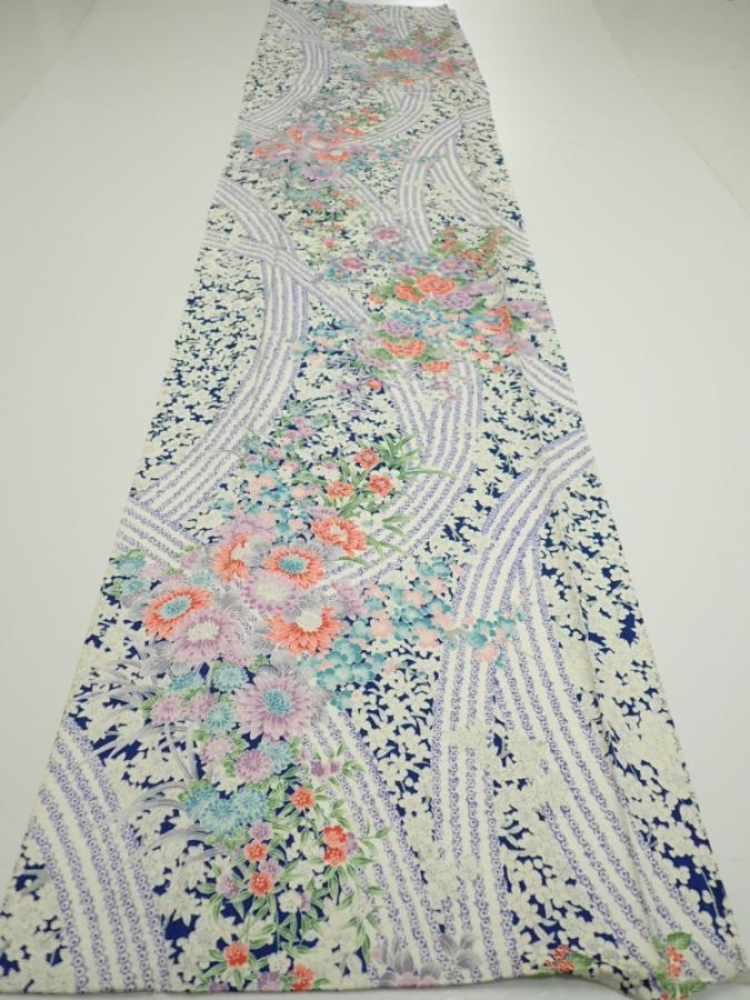 2M02z80 Japanese Kimono Silk FABRIC Flowers Navy 62.6x14.4