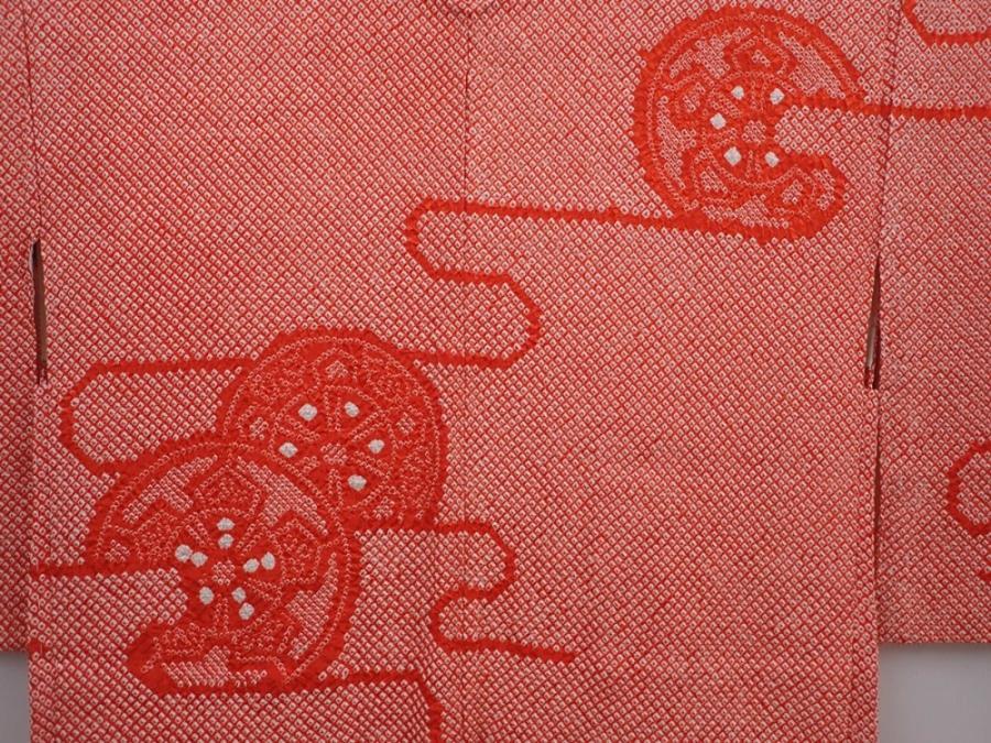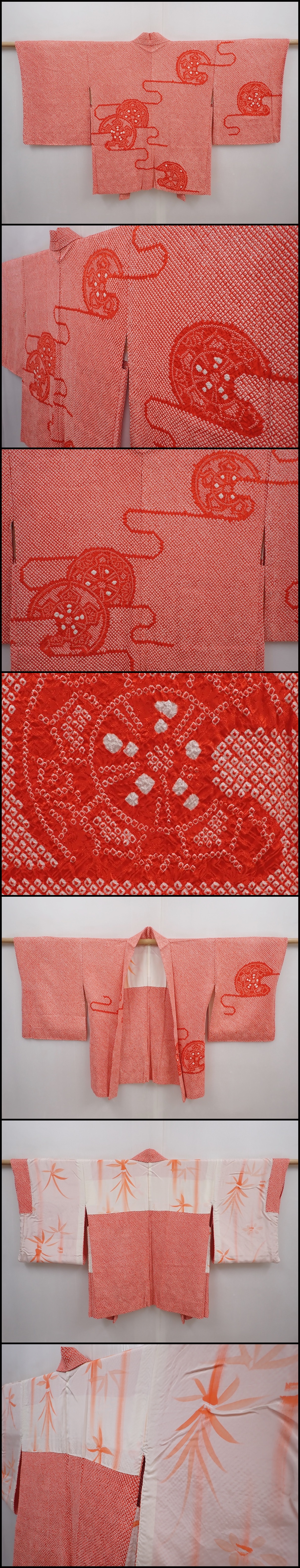 6226T01z510 Vintage Japanese Kimono Silk SHIBORI HAORI Tomato red
