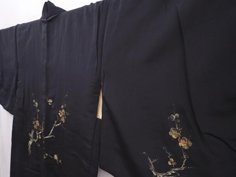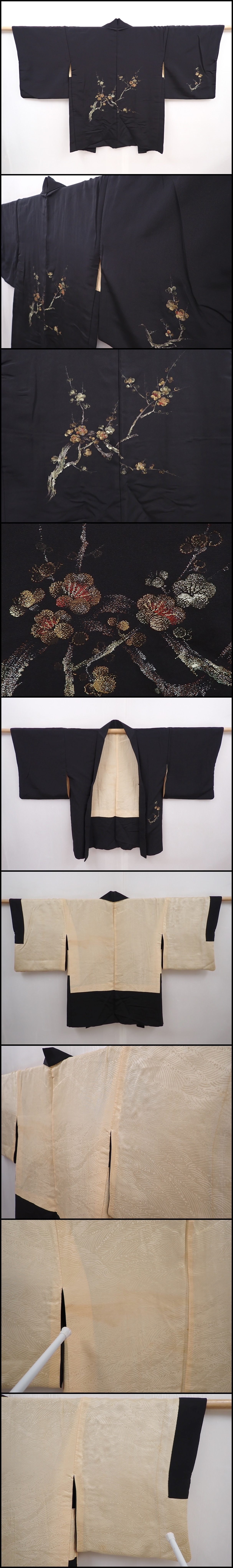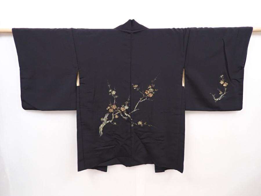 6226T11z550 Vintage Japanese Kimono Silk HAORI Plum blossom Black