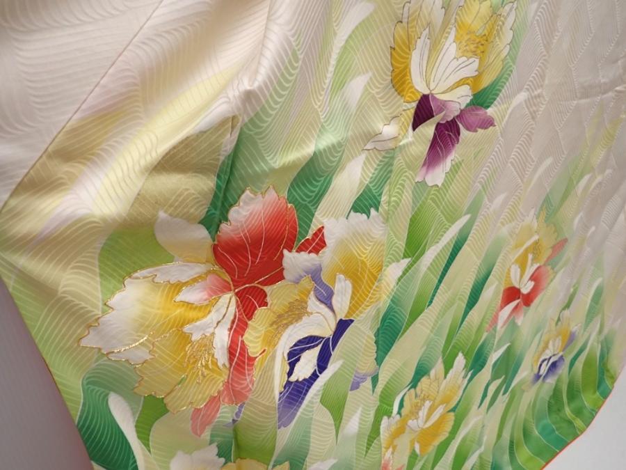 6226T13z1140 Vintage Japanese Kimono Silk FURISODE Flower Off-white