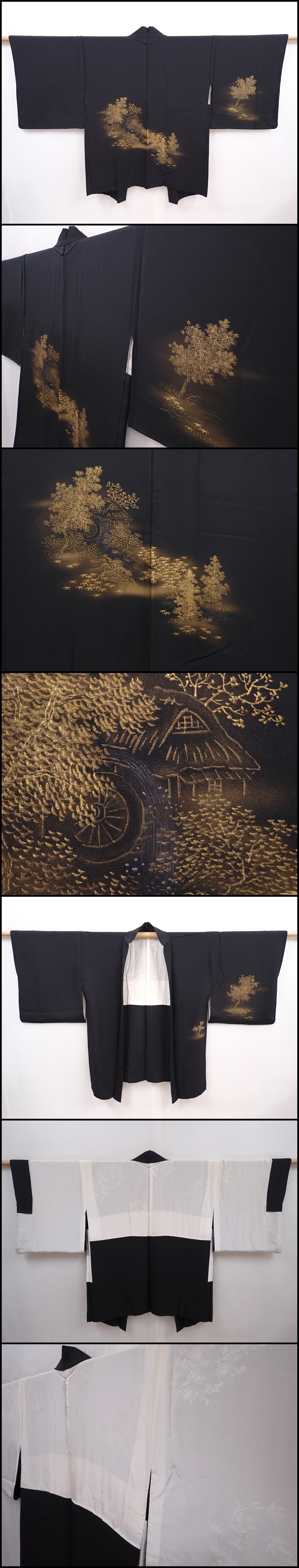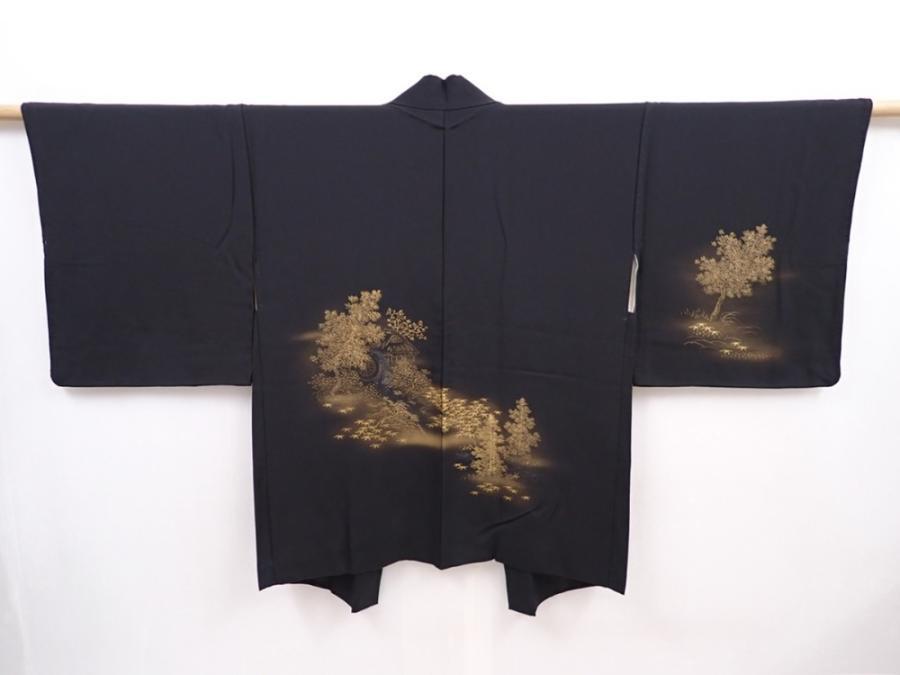 6302T02z580 Vintage Japanese Kimono Silk HAORI Trees Black