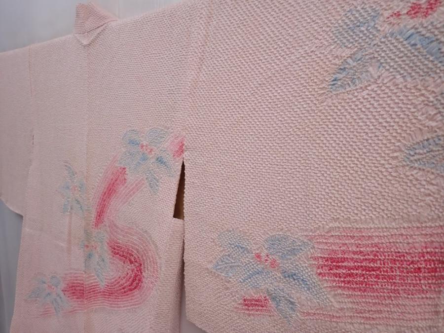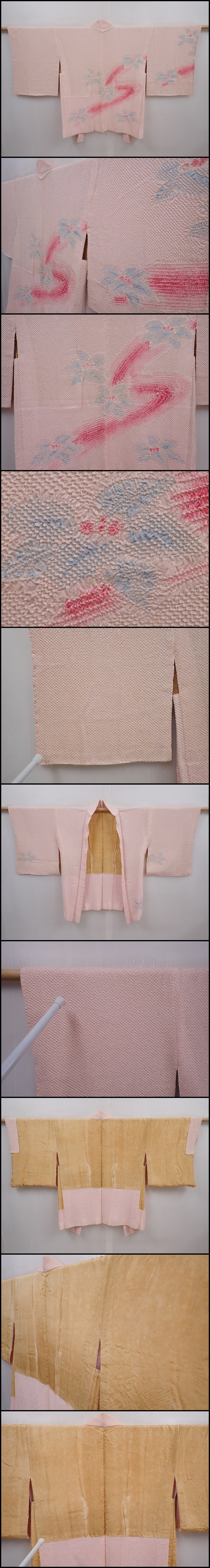 6302T05z490 Vintage Japanese Kimono Silk SHIBORI HAORI Flower Light pink