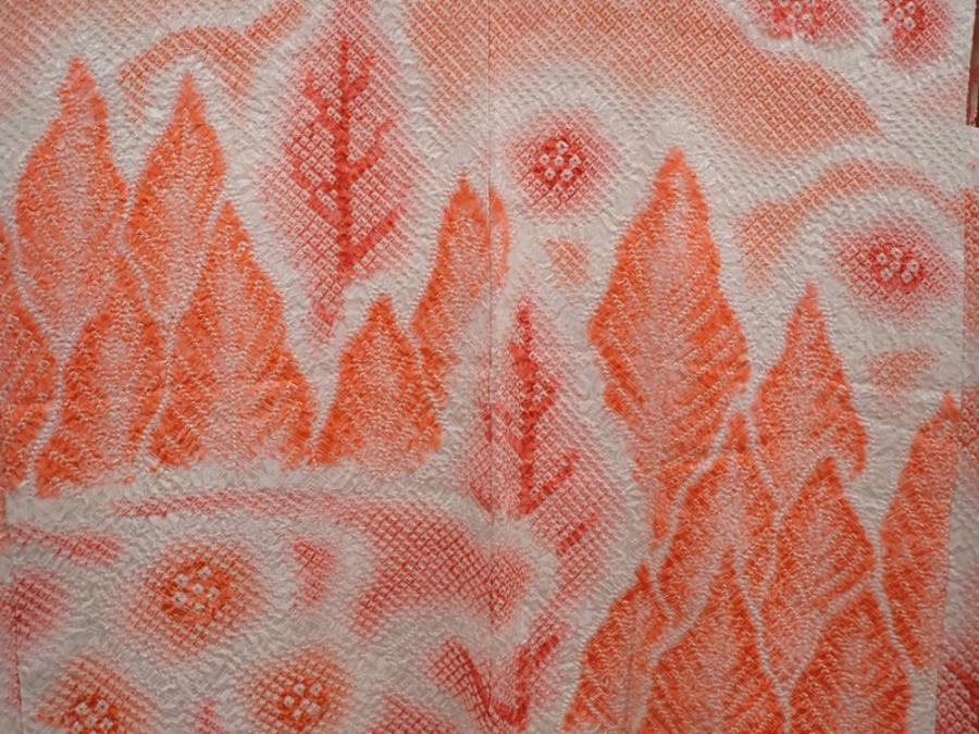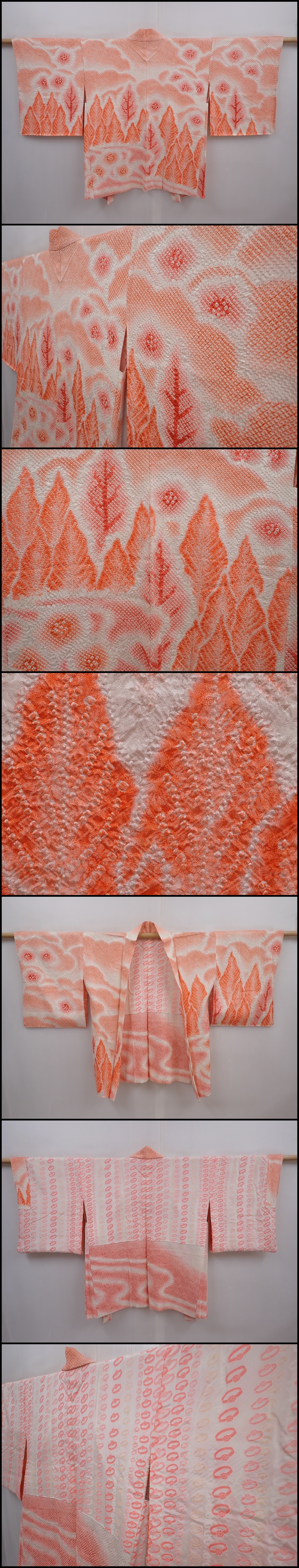 6302T06z520 Vintage Japanese Kimono Silk SHIBORI HAORI Orangered
