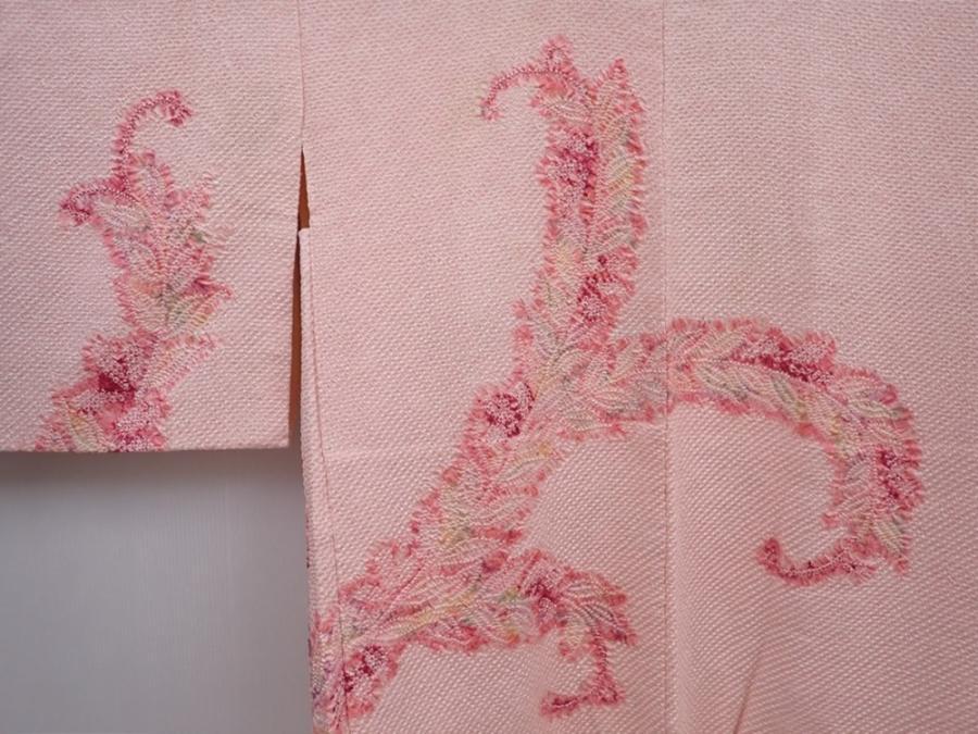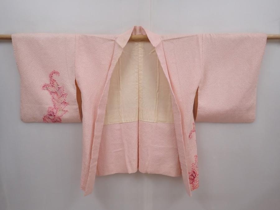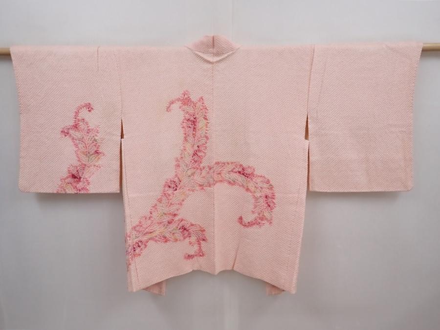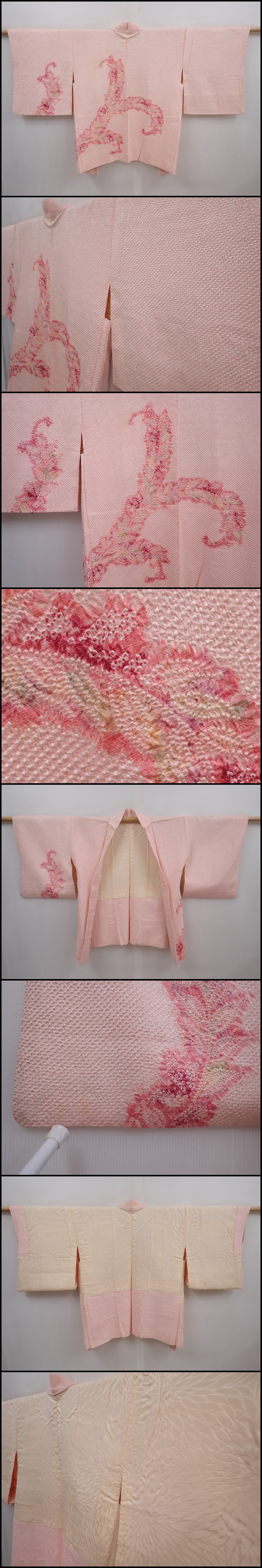6302T07z550 Vintage Japanese Kimono Silk SHIBORI HAORI Leaf Pink