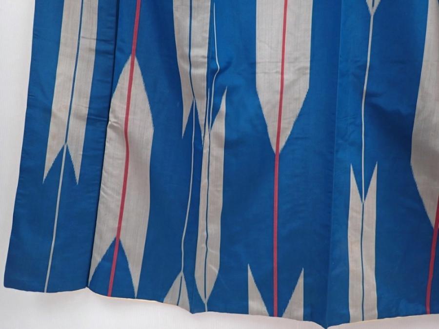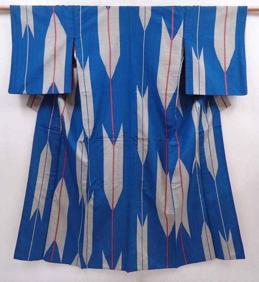 6302T10z630 Vintage Japanese Kimono Silk MEISEN KOMON Yagasuri Blue