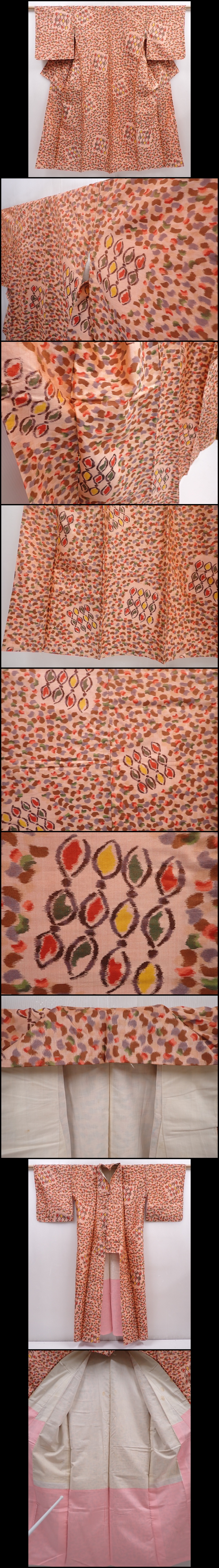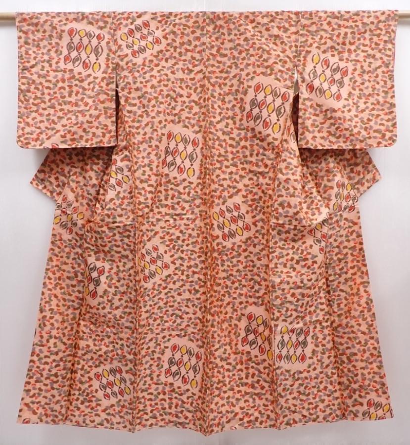 6302T11z630 Vintage Japanese Kimono Silk MEISEN KOMON Light brown