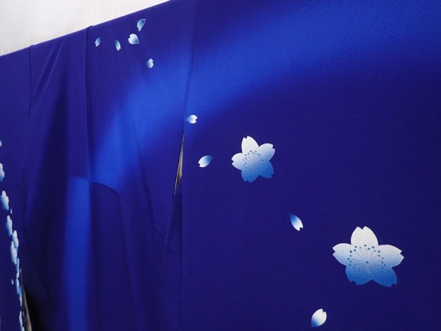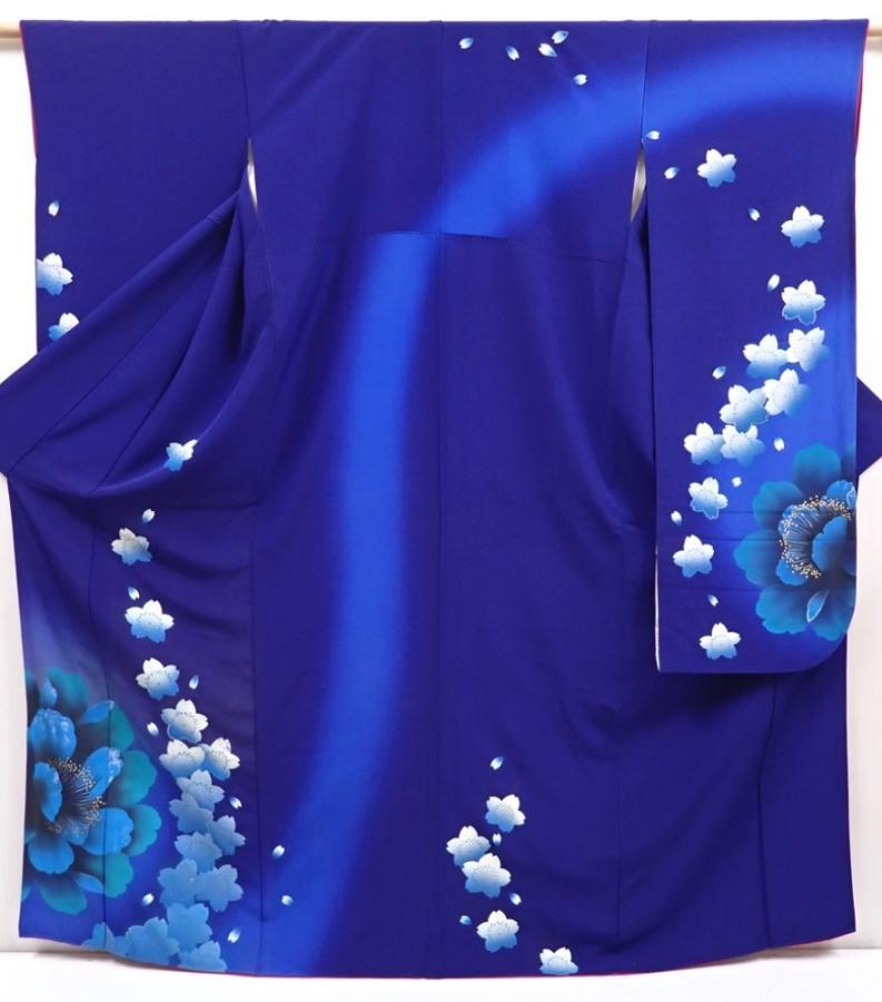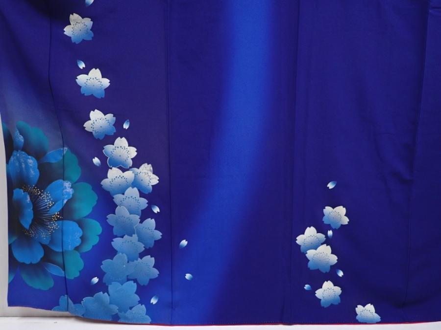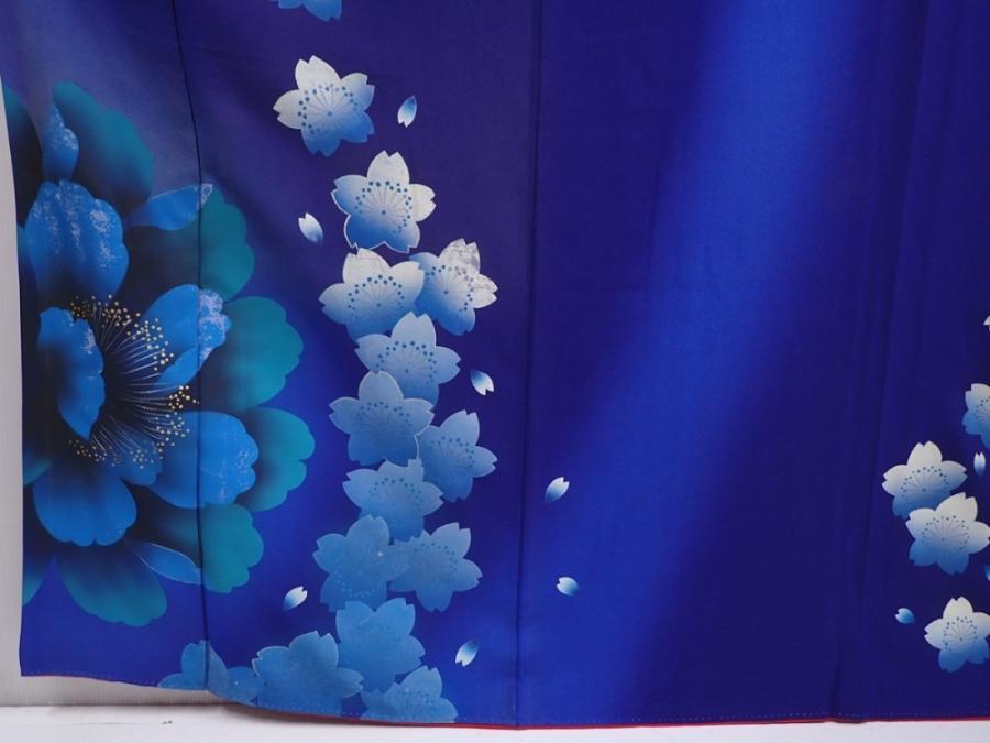 6302T12z1230 Japanese Kimono Silk FURISODE Peony Dark lavender blue