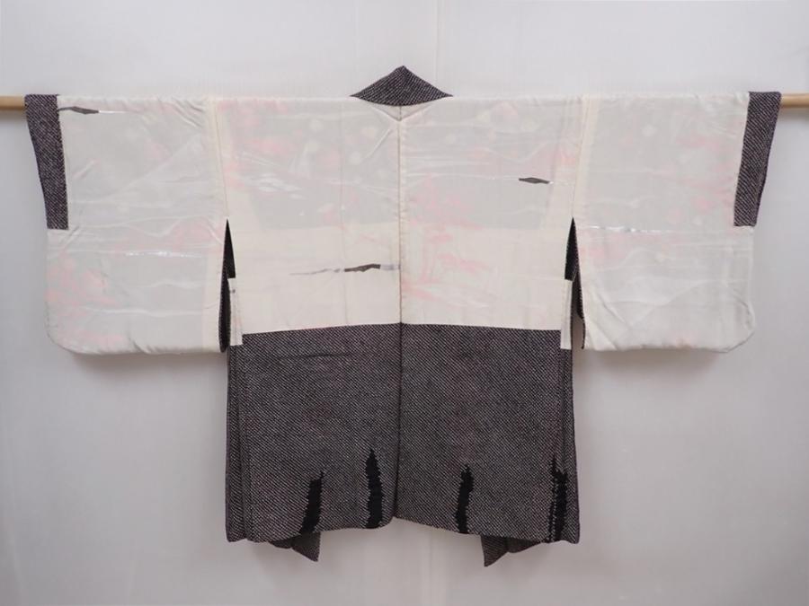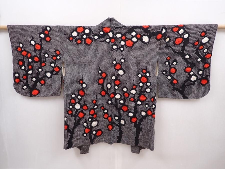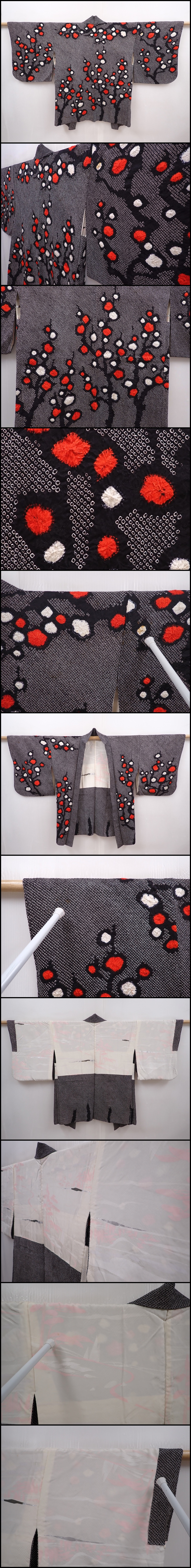 6303T07z630 Vintage Japanese Kimono Silk SHIBORI HAORI Plum tree Black