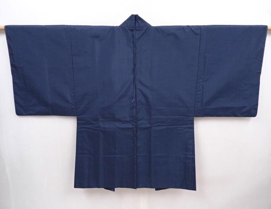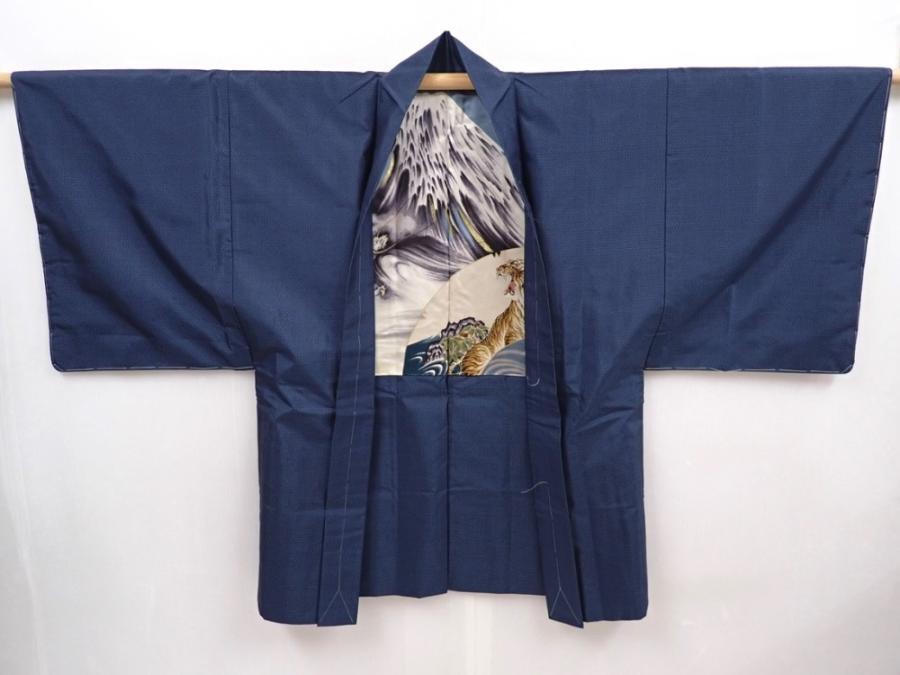 6309T03z540 Vintage Japanese Kimono Silk Men's OSHIMA HAORI Mt.Fuji Navy