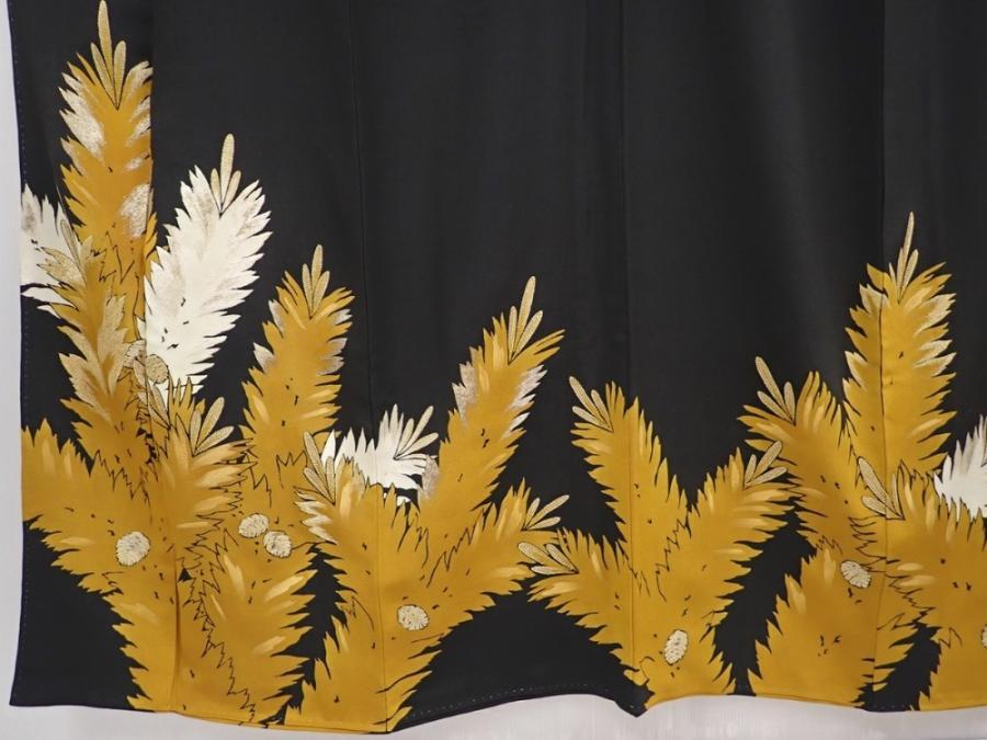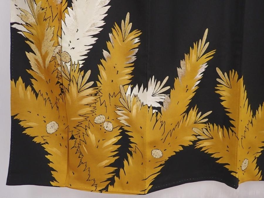 6309T09z1460 Vintage Japanese Kimono Silk TOMESODE Pine Black
