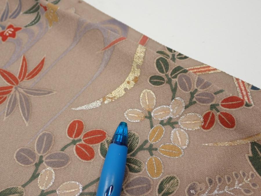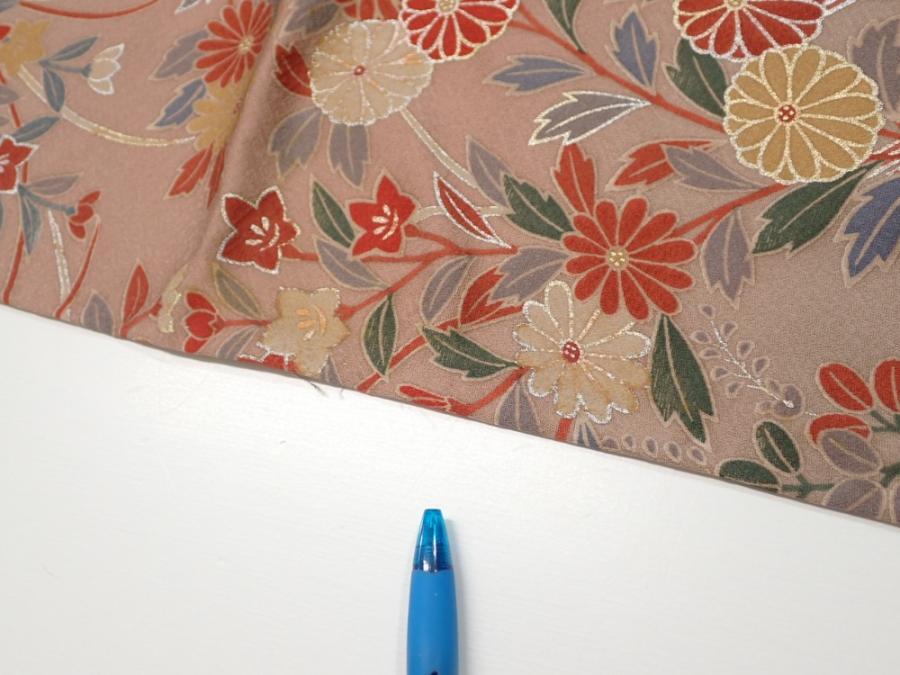 1F01z60 Japanese Kimono Silk FABRIC Flowers Brown-Gray 44.9x14.4