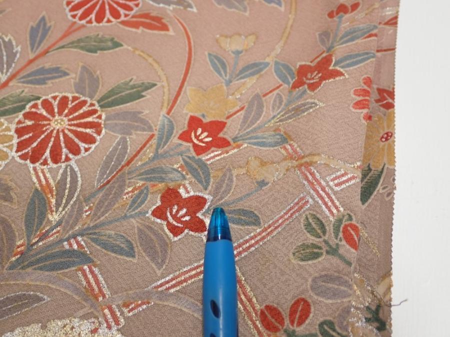 1F02z60 Japanese Kimono Silk FABRIC Flowers Brown-Gray 44.9x14.4