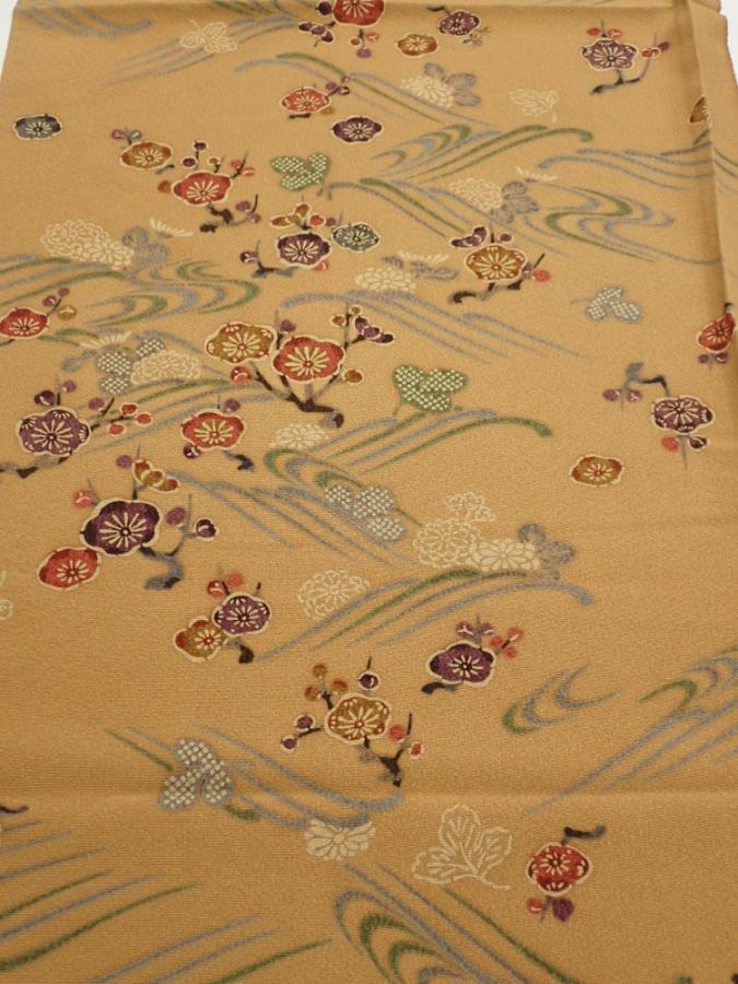 1F02z50 Japanese Kimono Silk FABRIC Plum blossom Ochre 42.1x14.8