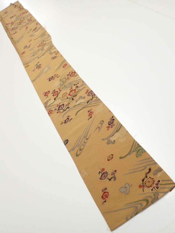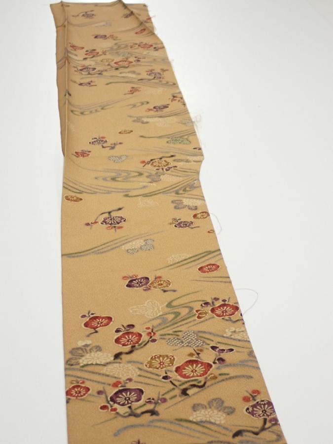 1F08z40 Japanese Kimono Silk FABRIC Plum blossom Ochre 58.3x7.3