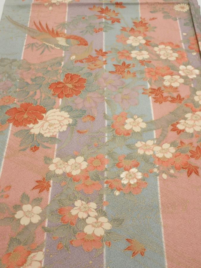 1F01z70 Japanese Kimono Silk FABRIC Bird Dull light blue 44.9x15.0