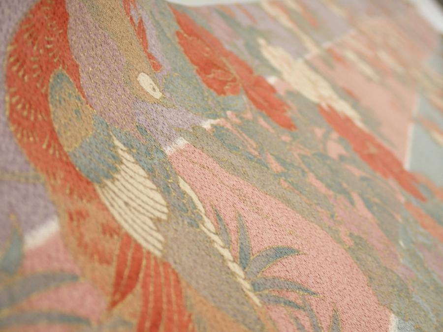 1F07z50 Japanese Kimono Silk FABRIC Bird Dull light blue 58.7x7.3