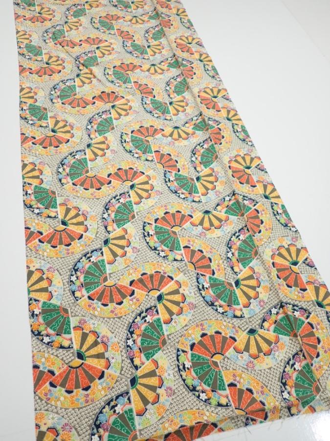 1F05z90 Japanese Kimono Silk FABRIC Genjiguruma Olive-Gray 62.2x14.4