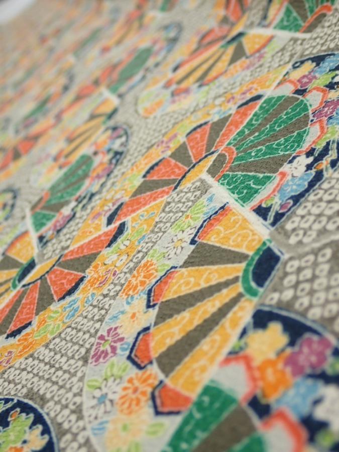 1F08z40 Japanese Kimono Silk FABRIC Genjiguruma Olive-Gray 57.5x7.3