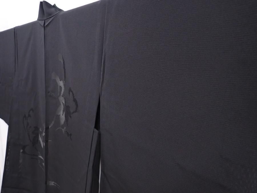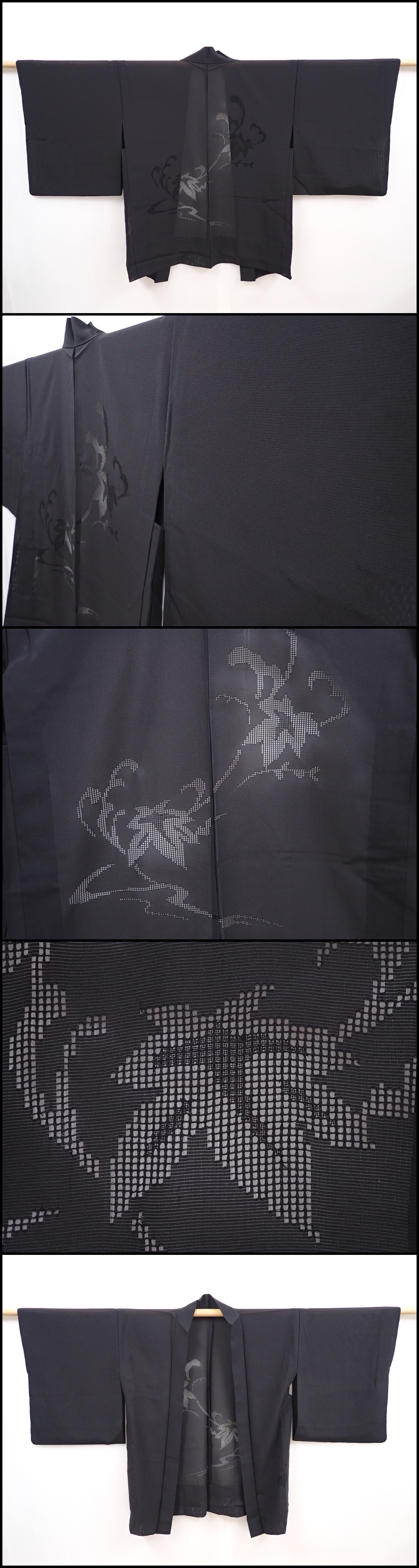 6313T01z280 Vintage Japanese Kimono Silk See through HAORI Leaf Black