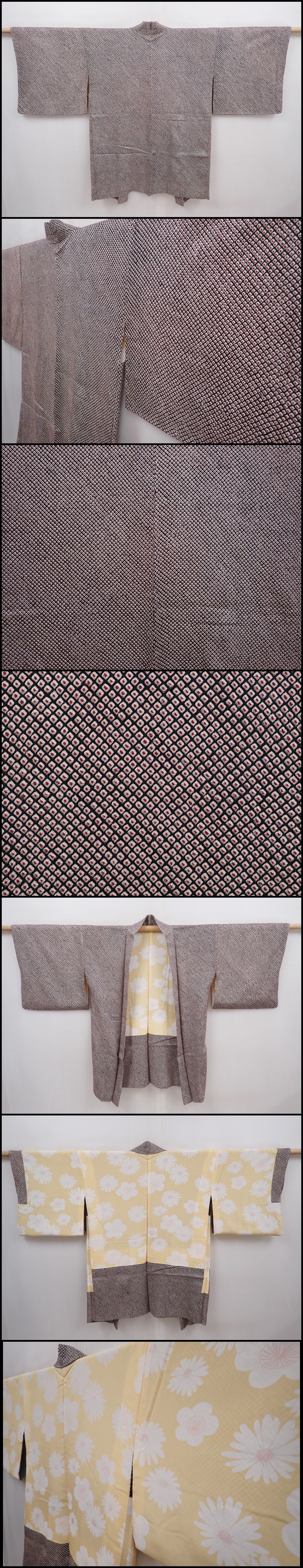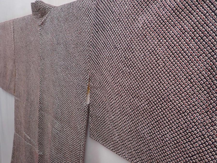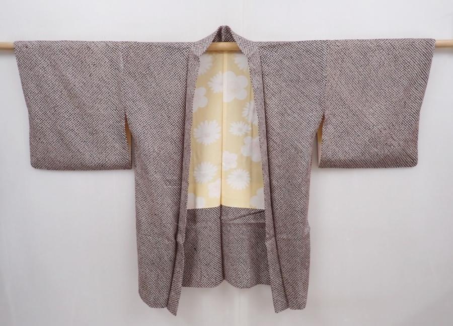 6313T04z470 Vintage Japanese Kimono Silk SHIBORI HAORI Plain Black