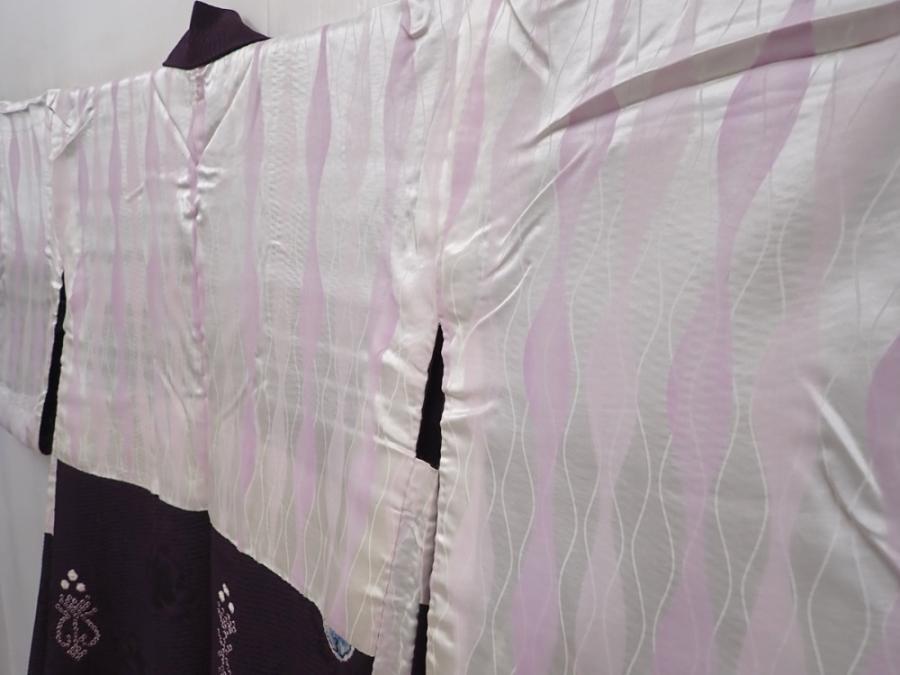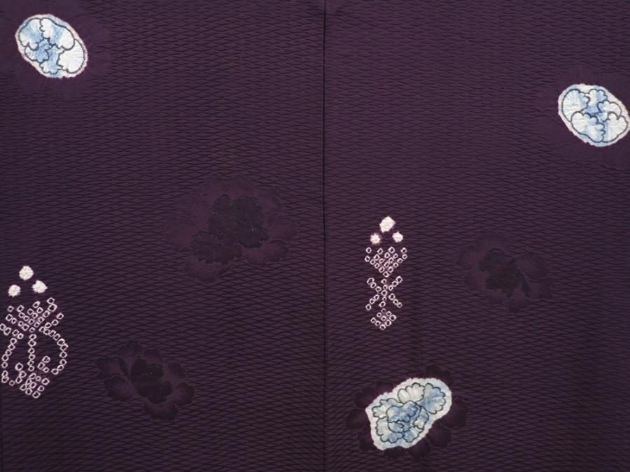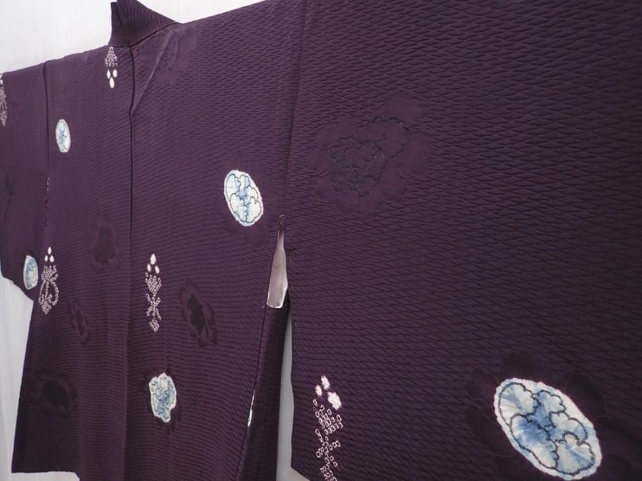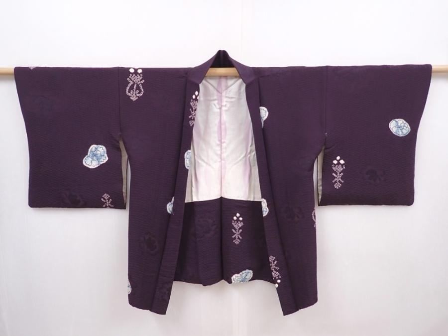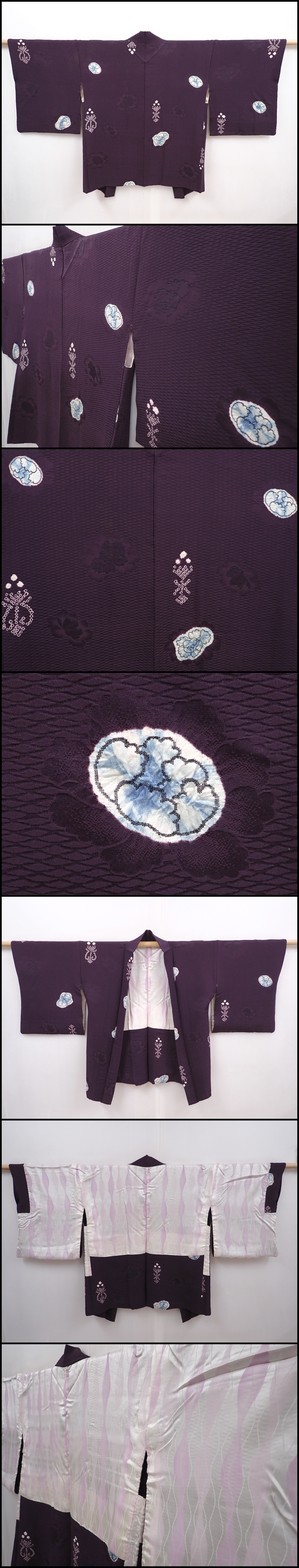 6313T10z540 Vintage Japanese Kimono Silk HAORI Flower Dark purple