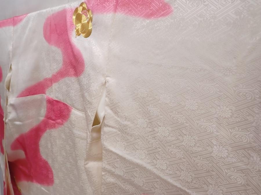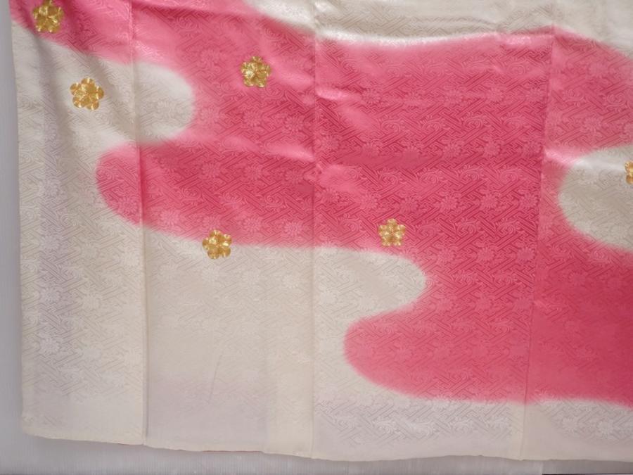 6313T12z770 Vintage Japanese Kimono Silk FURISODE Flower Pink-Purple
