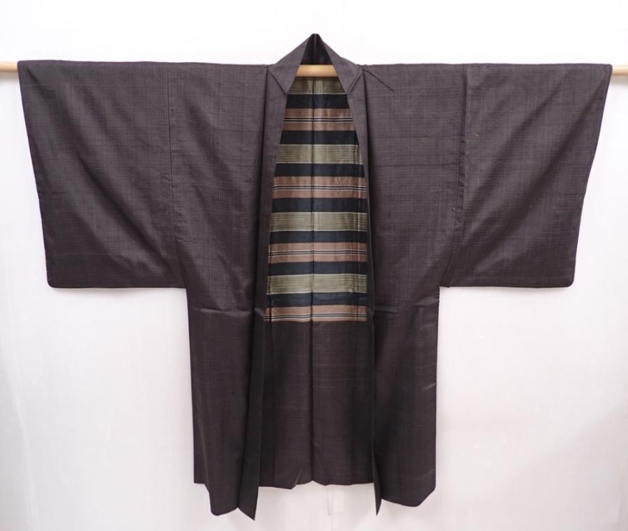 6317T08z410 Vintage Japanese Kimono Silk Men's HAORI Dark brown