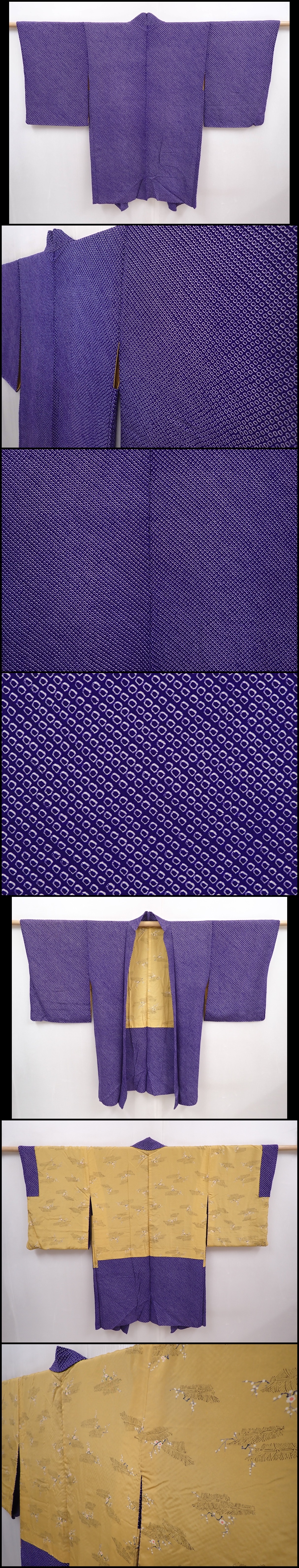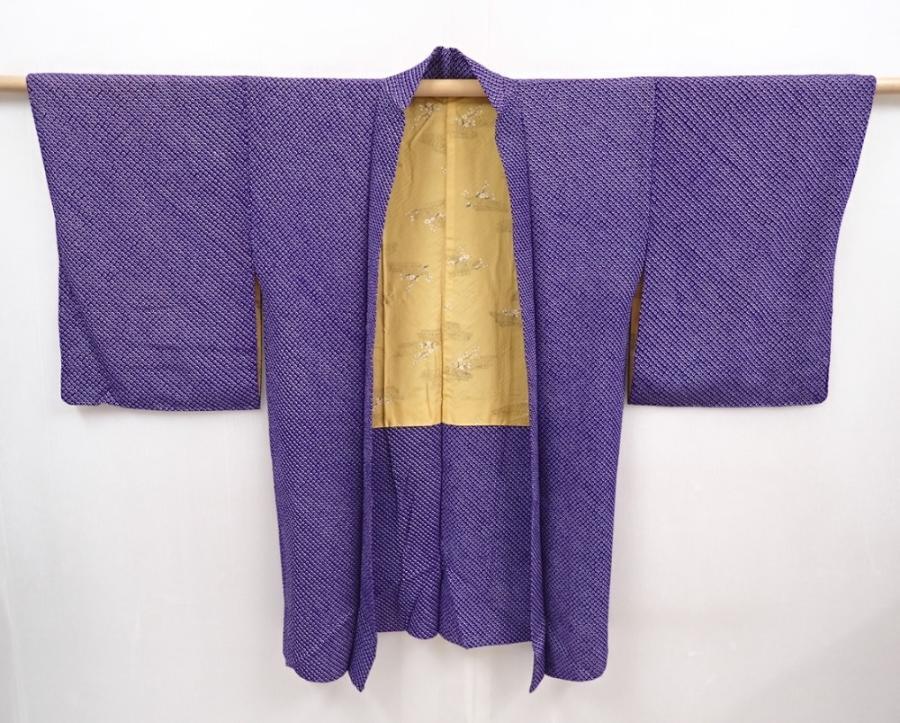 6317T01z510 Vintage Japanese Kimono Silk SHIBORI HAORI Plain Dark lavender