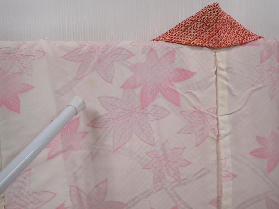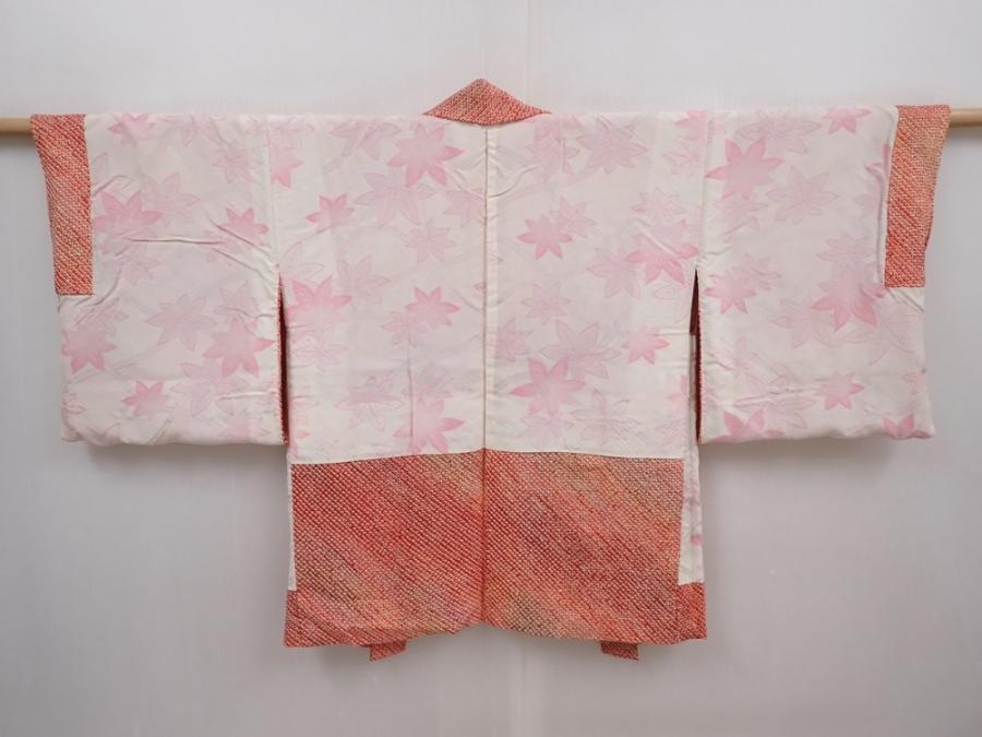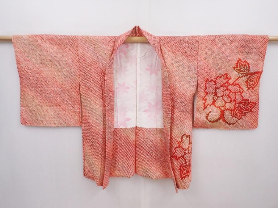 6317T02z410 Vintage Japanese Kimono Silk SHIBORI HAORI Peony Orange-Red