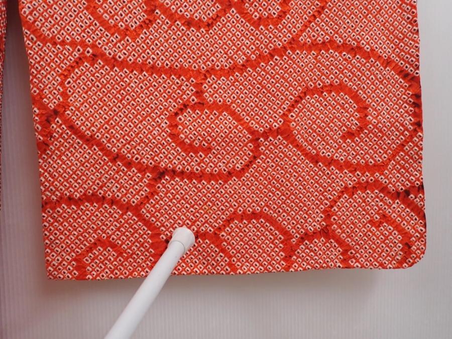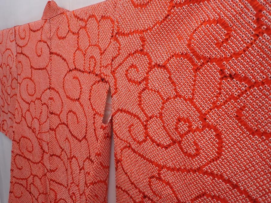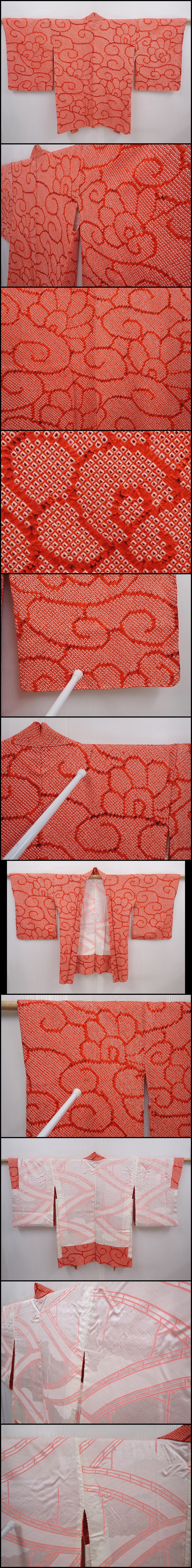 6317T05z540 Vintage Japanese Kimono Silk SHIBORI HAORI Tomato red