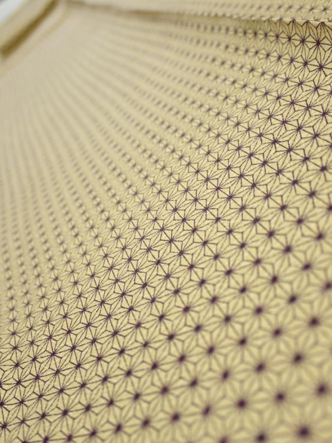 1E08z50 Japanese Kimono Silk FABRIC Asanoha Cream yellow 75.6x7.3