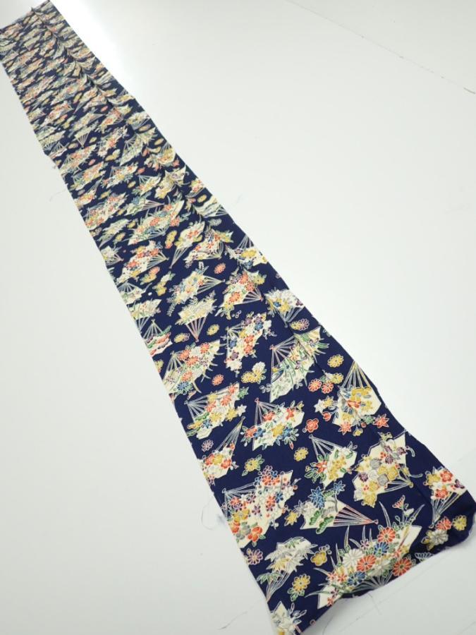 1E07z50 Japanese Kimono Silk FABRIC Folding fan Dark navy 59.1x7.7