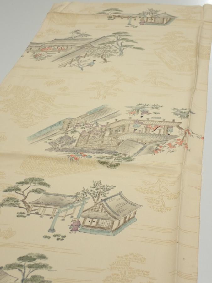 1E02z60 Japanese Kimono Silk FABRIC Heian noble Light cream 43.3x14.2
