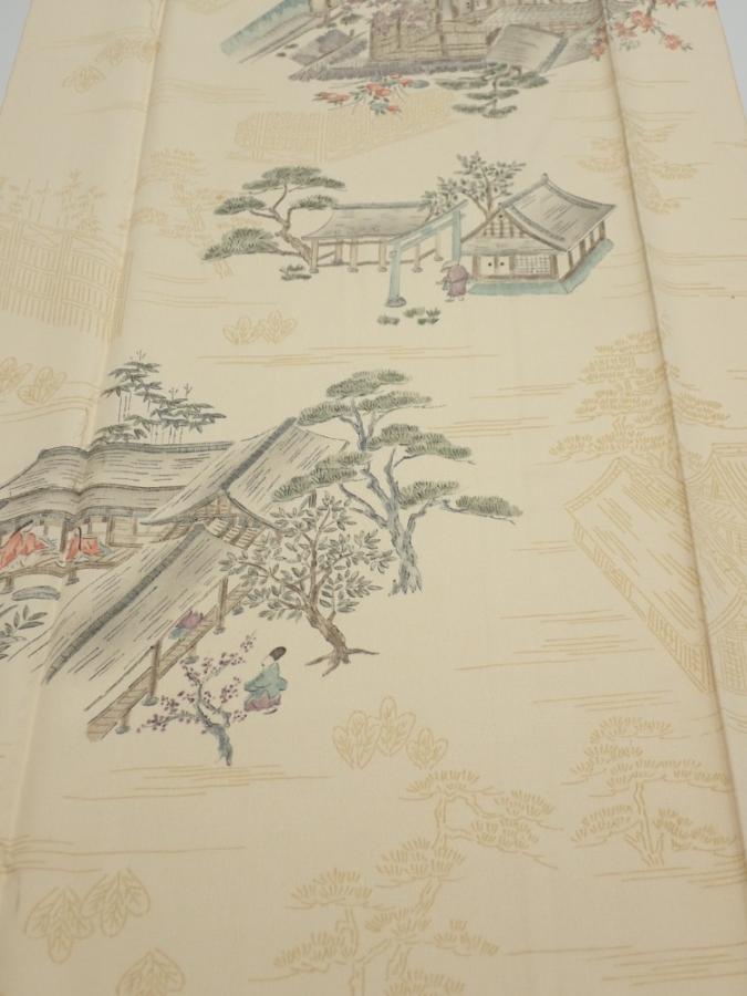 1E04z70 Japanese Kimono Silk FABRIC Heian noble Light cream 57.5x14.2