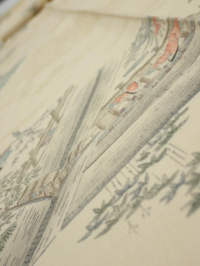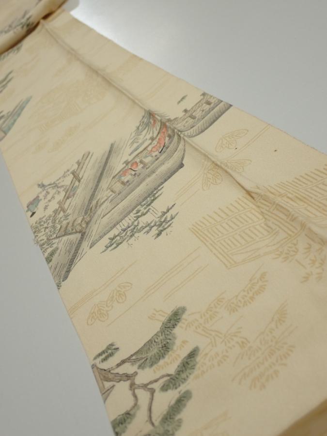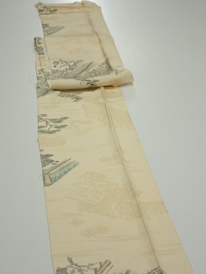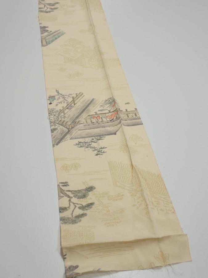 1E09z50 Japanese Kimono Silk FABRIC Heian noble Light cream 75.6x6.7