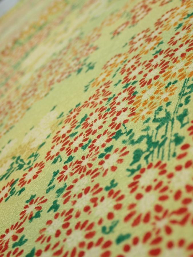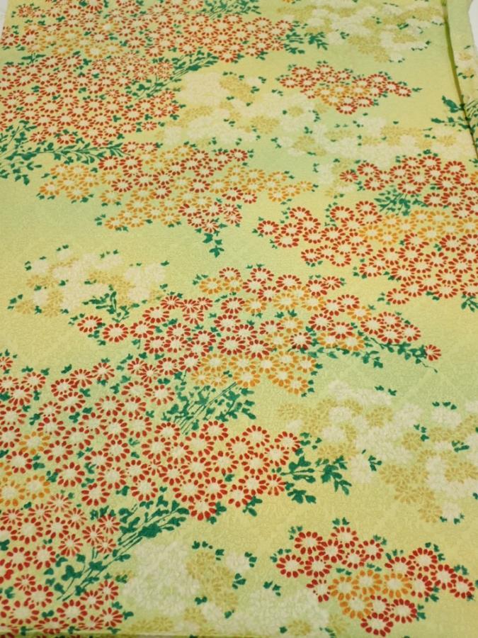 1A02z60 Japanese Kimono Silk FABRIC Flowers Lime-Yellow 38.6x14.8