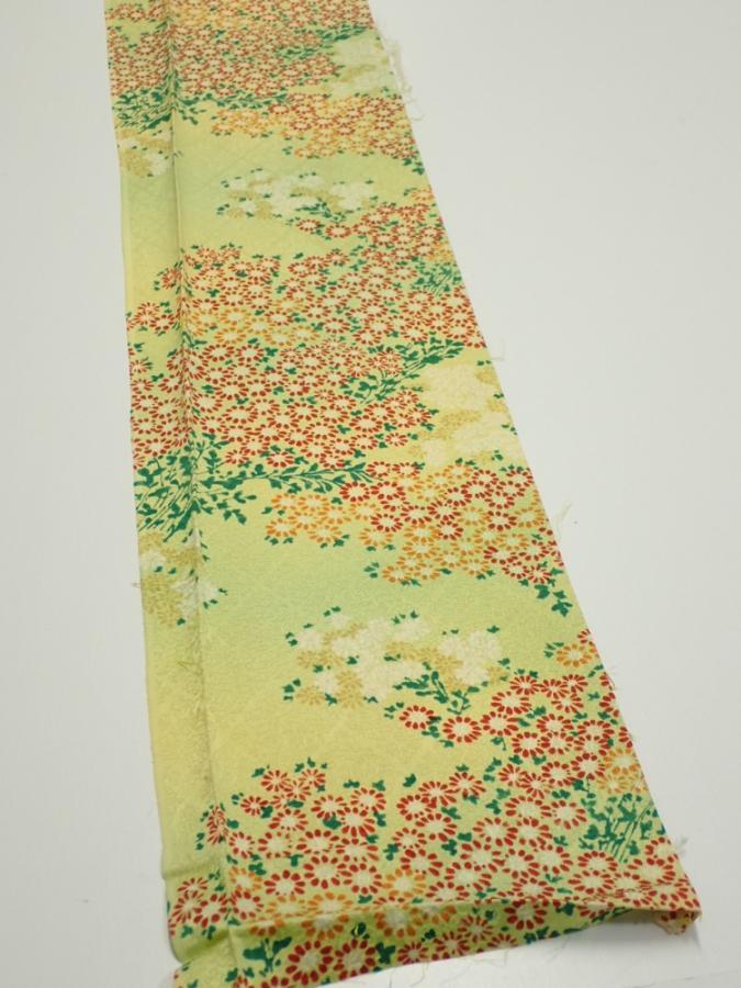 1A07z40 Japanese Kimono Silk FABRIC Flowers Lime-Yellow 53.5x7.5